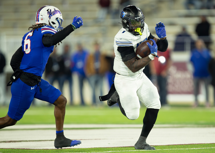 Iowa Western running back Daniel Swinney ran for 153 yards on 21 carries, and scored a touchdown, during the Reivers 28-10 victory over Hutchinson on Dec. 17, 2025. With the win, IWCC claimed the program’s fourth national championship and third in the last four seasons. (Photos courtesy of Travis Jacobson/IWCC athletics)