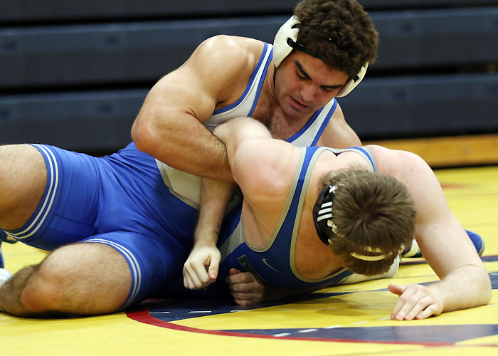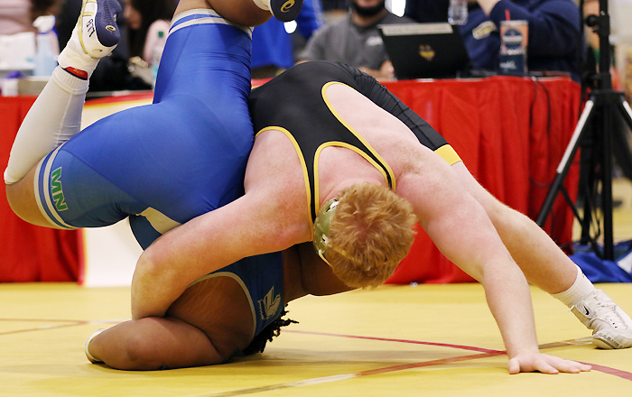 Fremont’s Preston Wagner entered the 2025-2026 Nebraska high school state wrestling championships undefeated and rated as the top wrestler in the 285-pound weight class. Wagner, a University of Virginia commit, did nothing to disappoint last week as he won the Class A 285-pound weight class state championship while ending his senior season with a perfect 48-0 record. (Photo by Jack Denker/Sports Plus)